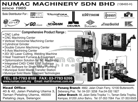 Numac Machinery Sdn Bhd / Şirket bürosu kategorisinde yer alan numac machinery sdn bhd adres bilgileri:. 2021 hhm machinery & instruments sdn. 681 jintai (m) sdn bhd sector code: We are an importer and distributor of industries tools and machinery. With 30 years experience in the metalworking industry, we provide solution engineering to the manufacturing industry with numerous technology such as 3d printing, cnc machine tools, cad/cam/cae, heat treatment. Was established in 1985 with the core business of marketing and servicing cnc machine tools.
